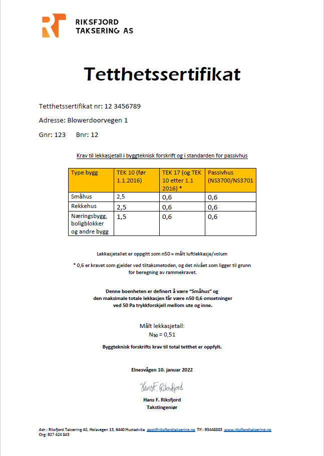 En trykktest (eller tetthetskontroll) er en metode for å måle lekkasjer som kan oppstå gjennom en konstruksjon. Vi som utfører denne testen må kartlegge luft som slipper igjennom f. eks dører, vinduer og loft. Vi har spesialutstyr hvor vi kan måle hvor mye luft konstruksjonen slipper gjennom ved ulike differansetrykk.